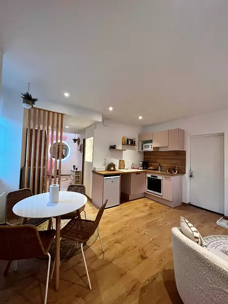 Situé au rez-de-chaussée d'un immeuble sécurisé comprenant 8 appartements, coup de coeur pour cet agréable T1 bis meublé entièrement rénové offrant une pièce de vie avec sa cuisine aménagée et équipée, le dégagement avec grand dressing et nombreux rangements dessert la salle d'eau et le coin nuit. A visiter.
