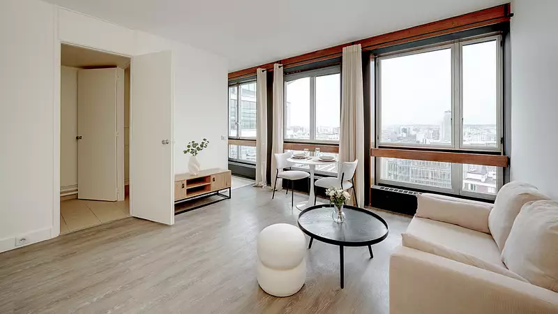À proximité de la gare Montparnasse, bel appartement meublé au 14éme étage avec une belle vue sur Paris.