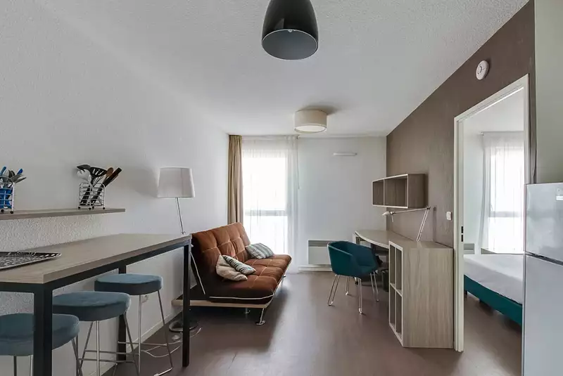 - Logements entièrement meublés et équipés (micro-ondes, frigo, Wi-Fi fibre optique)