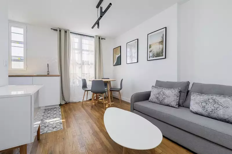 Au cœur de la rue des Bourguignons et à proximité immédiate de la gare de Bois Colombes et des commerces, dans un immeuble 1930 situé villa Aubert, un appartement au 5e et dernier étage (SANS ASCENSEUR) meublé se composant de deux pièces avec une entrée, un séjour avec cuisine ouverte équipée et aménagée (réfrigérateur, hotte aspirante, plaques chauffantes 4 feux, lave-vaisselle et lave-linge) , une chambre et salle de d'eau avec douche à l'italienne et WC. Eau chaude et chauffage collectifs compris dans les charges.