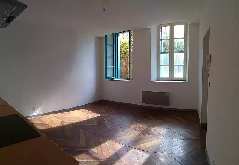 Au rez de chaussée d'un petit immeuble proche du centre ville, appartement comprenant une pièce à vivre avec cuisine ouverte aménagée, une salle d'eau, et une chambre avec placard.