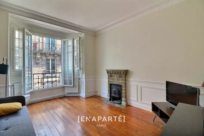 [ENAPARTÉ] Vous propose un appartement lumineux et tout confort, situé dans une rue calme du 16ème arrondissement entre l'Arc de Triomphe et le Trocadéro au 4ème étage (sans ascenseur) d'un immeuble de la fin du XIXe siècle. Appartement de charme typiquement parisien avec son parquet, ses moulures et sa cheminée prussienne. L'appartement de 35m² composé d'un salon avec canapé convertible de qualité, d'une cuisine équipée, d'une chambre avec lit double et grand placard, une salle de bain et des WC séparés. Attention uniquement en Bail code civil résidence secondaire hors champ loi 89 Copropriété de 15 lots - dont 12 lots habitation. (Pas de procédure en cours). Charges annuelles : 1560 euros.