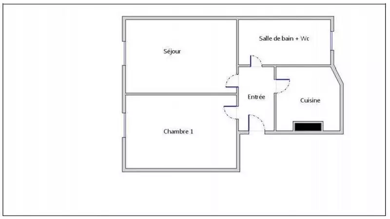 Chambre et salon orientés plein sud, salle de bain orientée nord et cuisine vers l'ouest.