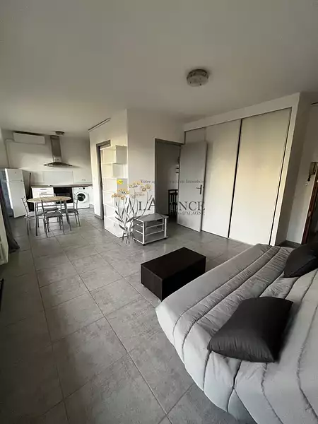 L'Agence Bastia-Balagne vous propose à la location secteur Sud de Bastia, dans une résidence sécurisée un grand studio entièrement meublé climatisé avec une grand balcon sans vis à vis.
