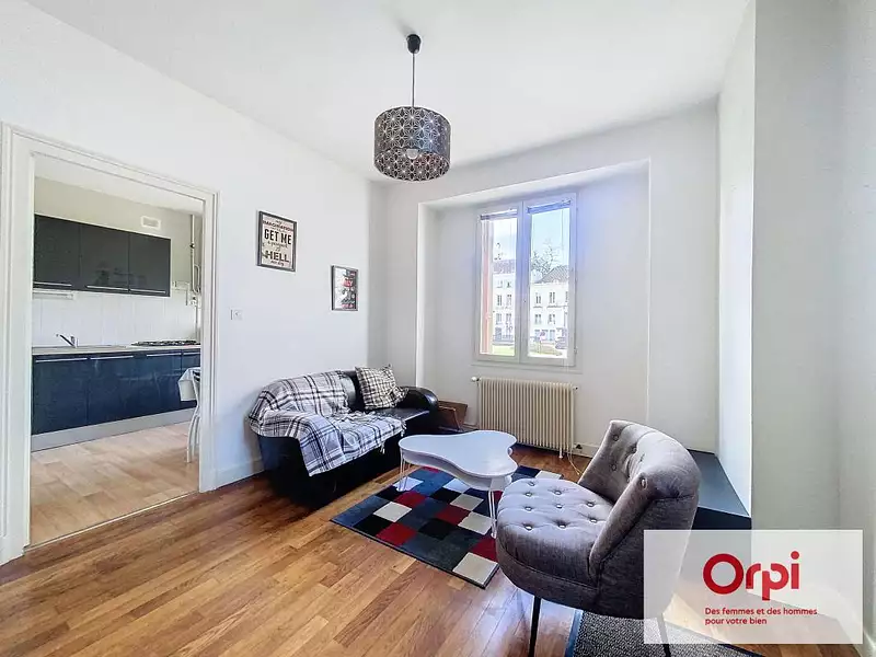 Appartement de type 2 meublé situé au cœur de Néris-les-Bains composé d'un séjour, d'une cuisine aménagée et équipée, d'une chambre avec placards et d'une salle de bain.