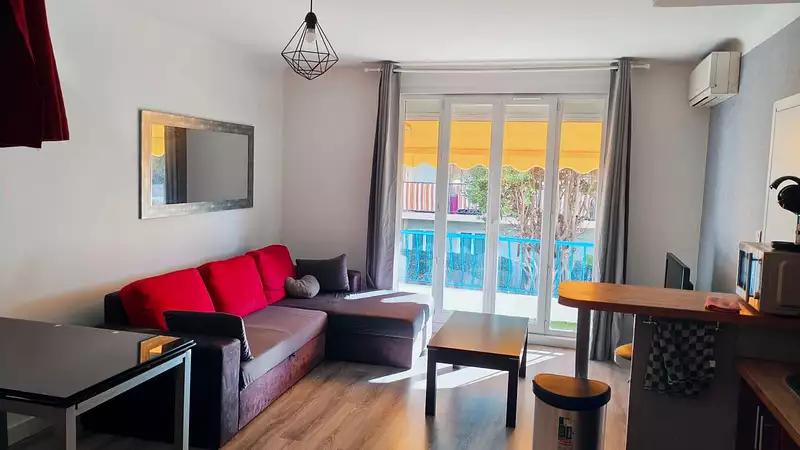 Avenue du Loup, dans un secteur calme proche de la mer, magnifique studio meublé de 35m², pièce de vie climatisée avec cuisine ouverte et coin nuit en mezzanine, nbrx rangements, double vitrage, salle de douche avec toilette, balcon exposé sud.
