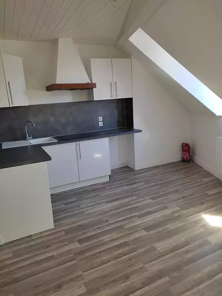 Appartement de 35 m2 comprenant une entrée desservant une pièce à vivre avec cuisine ouverte aménagée et semi équipée (plaques vitrocéramique et hotte, branchement machine à laver), une chambre avec accès à une salle d'eau avec WC Chauffage par convecteurs électriques, eau froide par décompteurs, production d'eau chaude par cumulus électrique Loyer mensuel: 420 euros Honoraires à la charge du locataire : 350 euros comprenant 105 euros d'honoraires d'état des lieux Dépôt de garantie : 420 euros Libre le 12/11/2025