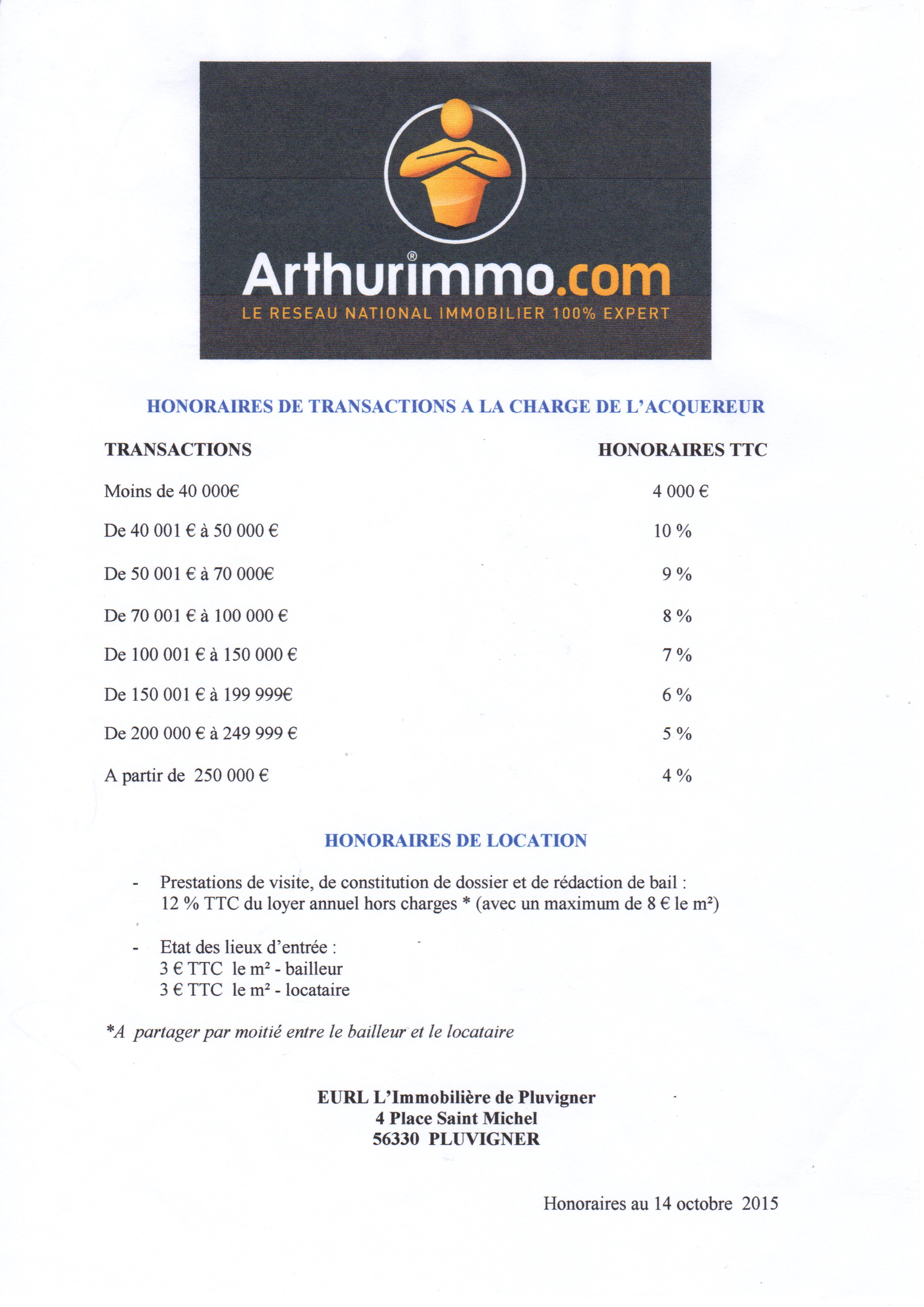 Frais d'état des lieux : 105 €. Barème d’honoraires : voir le barème