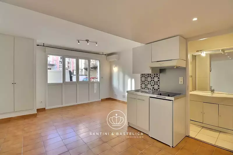 Situé en rez-de-chaussée d'un petit immeuble, cet appartement se compose d'un séjour / cuisine avec kitchenette et placard de rangement, une salle d'eau / wc et une chambre avec placard.