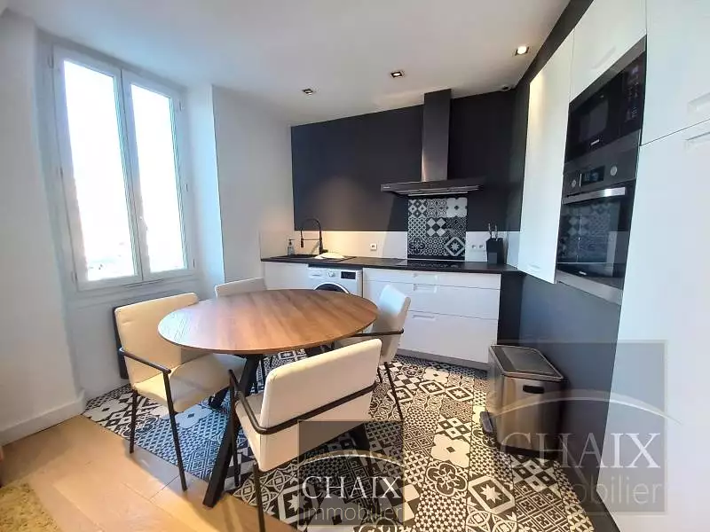 Superbe appartement entièrement rénové et meublé avec goût ! Ce type 2 aménagé tel un cocon au style chaleureux, vous offre une vraie qualité de vie avec ses équipements de qualité et un espace confortable. Une belle cuisine toute équipée ouvre sur un agréable séjour. Une grande chambre avec rangement, un dégagement avec petit placard et une salle d'eau avec WC.
