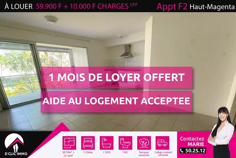 Idéalement situé, proche des commerces, des établissement scolaires et de toutes commodités dans le quartier de Haut-Magenta, l'agence D'CLIC IMMO vous propose un spacieux appartement de type F2 de 38.78m² habitable + 13m² de terrasse couverte + cellier + 1 place de stationnement couverte et privative, situé au R+1 de la Résidence PENDJARI, sécurisée, avec ascenseur.