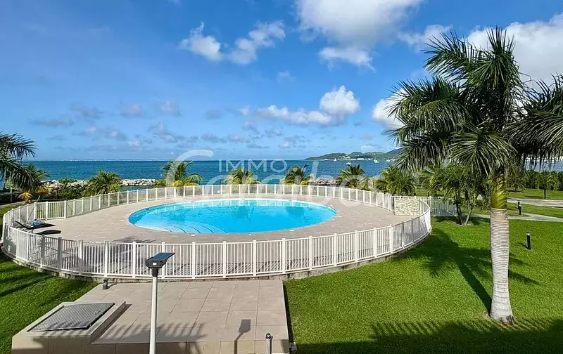 T2 avec jardinet, situé au rez-de-chaussée d'une résidence sécurisée du bord de mer sur la Baie Nettlé. Neuf, entièrement meublé et équipé.