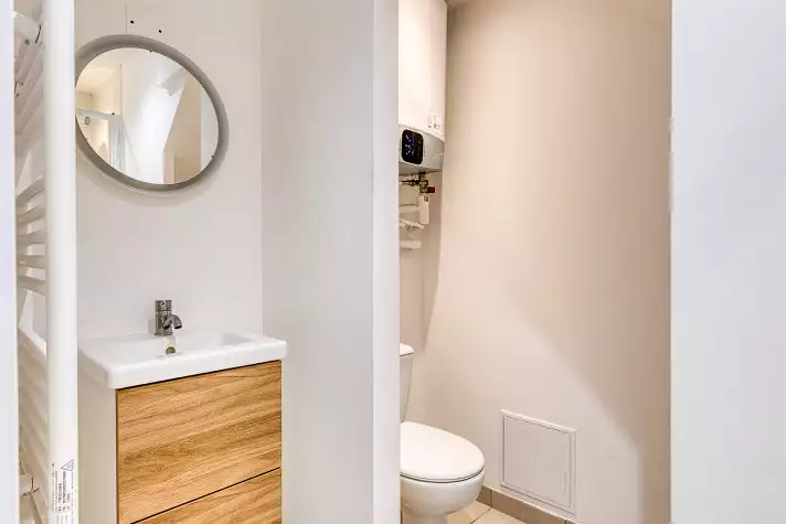 À louer dans un quartier modernisé, au rez-de-chaussée côté rue d'un petit immeuble entierement rénové suivant les dernières normes en 2024, situé rue de Calais à Tourcoing, nous vous proposons un magnifique T2 de 37,97 ² transformé et pensé par un architecte.