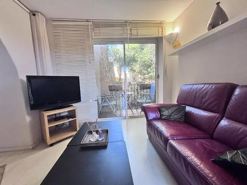 Location annuelle, T2 au cœur du village entièrement meublé et équipé, composé d'un séjour avec balcon, une cuisine ouverte, un wc avec douche, une chambre et une salle d'eau avec wc.