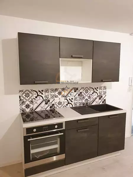 A louer, Saint Affrique, Centre-ville, Charles De Gaulle, appartement de type 2 en 1er étage. 39 m2 habitables. Entrée sur salon-séjour 21 m2 avec coin cuisine intégré et semi-équipé (plaque indiuction, hotte et four), une chambre avec placard, salle d'eau et w-c séparé. Entièrement rénové. Disponible le 01/01/2026. 05 65 99 19 19