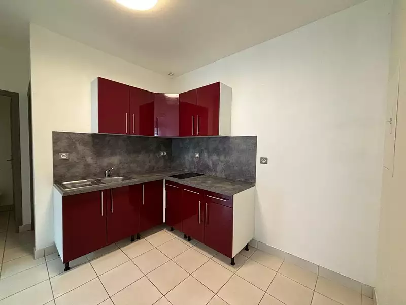 Sur un axe principal à proximité immédiate du centre-ville et au premier étage d'un petit immeuble se trouve un appartement de type 2 de 40 m² comprenant une cuisine aménagée ouverte sur la pièce de vie, une chambre lumineuse, une salle de douche, des toilettes et une place de parking privative.