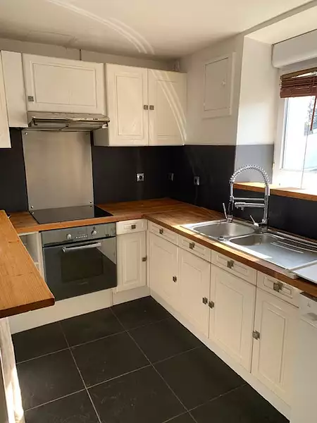 Cet appartement en très bon état se compose à l'étage inférieur d'un salon avec cuisine ouverte aménagée et équipée, 1 WC à l'étage une chambre avec une salle de douche et WC.