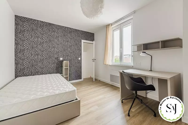 Au sein d'une colocation entièrement refaite à neuve à l'été 2025, cette chambre entièrement meublée dispose d'une salle de bain et wc privatif ainsi que d'une cuisine, un salon, une buanderie et un balcon partagé.