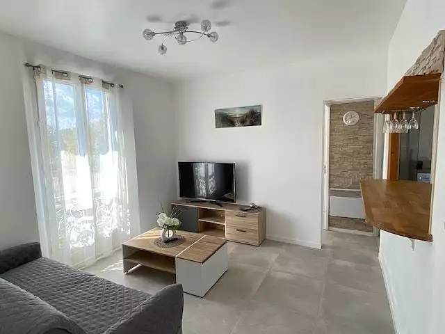 Idéalement situé sur la commune, cet appartement de type 2 aux prestations soignées est loué meublé. Libre à partir du 15 Décembre, il a été entièrement refait à neuf par son propriétaire. Il se compose d'une entrée avec coin repas climatisé, d'un séjour avec canapé convertible donnant sur une cuisine ouverte équipée, d'une chambre avec placard et d'une salle de bain avec wc. Le bien dispose également d'un jardin dans lequel on peut garer un véhicule. Le mobilier mis à disposition par le propriétaire est très récent. Abris de jardin. Mandat 796. Loyer 1030.00€ / Caution 2060.00€ / Honoraires locataire 540.67€ (10€x41.59m²=415.90€ pour la recherche locative et 3€x41.59m²=124.77€ pour les états des lieux).