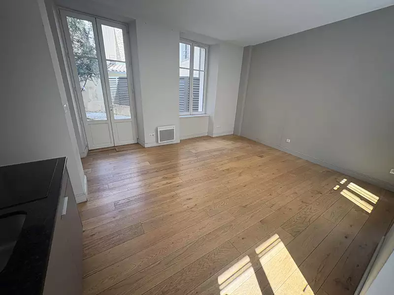 Nous vous proposons un appartement de type T2 de 41,93 m². Situé au rez-de-chaussée, il comprend : un séjour avec cuisine donnant sur une cour privative d'environ 34 m², une chambre et une salle de bain avec WC.