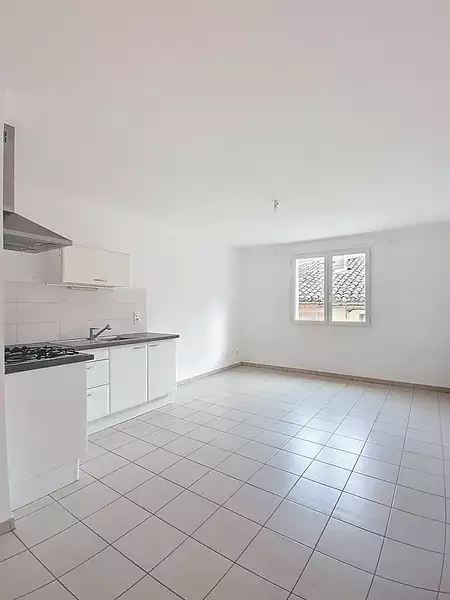 Réalmont centre ville, appartementT2 de 40m² au 1er étage composé d'un pièce de vie, cuisine aménagée (hotte-plaque gaz), une chambre avec placard, salle d'eau avec wc, cellier. chauffage au sol électrique. Les charges comprennent l'eau et la taxe d'ordures ménagères.