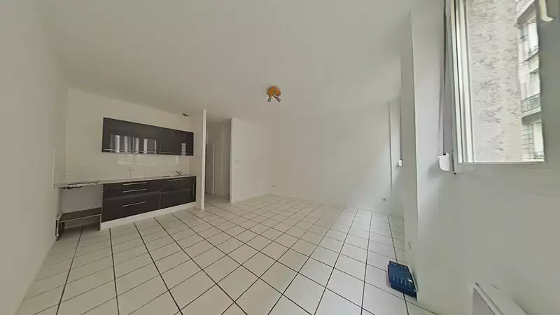 Hall d'entrée, coin cuisine avec plaques et meubles hauts et bas ouvert sur séjour, chambre indépendante, salle d'eau avec douche, wc et lavabo, chauff ind élec, double vitrage PVC, volets roulants, interphone, libre de suite