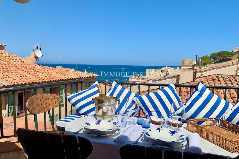 L'appartement s'articule sur deux étages (deuxième étage et troisième étage) plus mezzanine et petite terrasse vue mer.