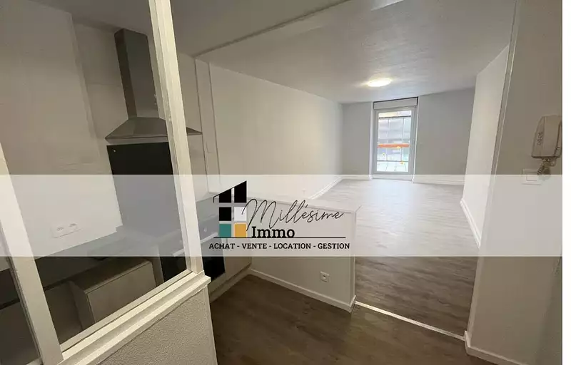 Sarrebourg, proche Leclerc, appartement de type T2 en RDC, comprenant : une entrée donnant accès sur un espace cuisine équipée semi ouverte sur séjour avec accès direct sur une terrasse