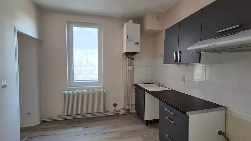 Vichy, Quartier hôpital et proche du lycée Albert Londres, appartement F2 de 42m2 composé ; cuisine fermée, séjour, chambre, salle de bain avec douche neuve. Double vitrage, chauffage individuel gaz.