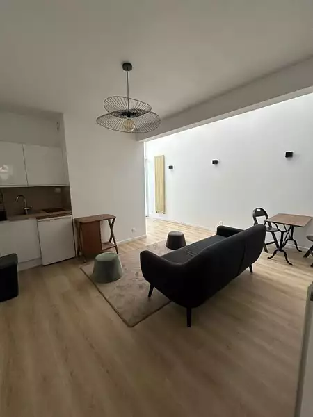Situé au rez-de-chaussée d'un immeuble de 1948, cet appartement meublé de 43,43 m² offre un agencement fonctionnel et lumineux. L'entrée dessert un séjour clair bénéficiant d'un coin cuisine intégré, pratique et optimisé pour la vie quotidienne. Deux chambres calmes permettent d'aménager un espace nuit séparé et, selon vos besoins, un bureau ou une chambre d'appoint. La salle d'eau et les toilettes séparées complètent le plan de manière simple et efficace.