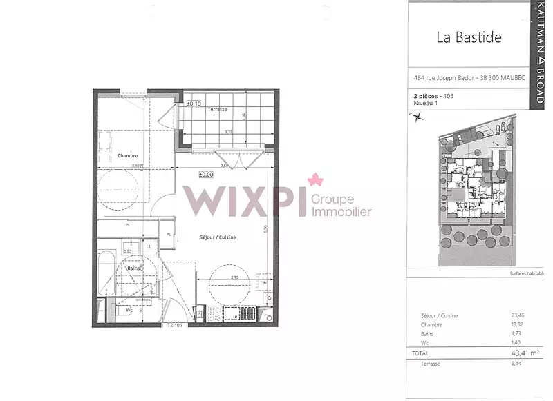 MAUBEC - Rue Joseph Bedor - Appartement T2 de Novembre 2025 de 43m² avec terrasse et parking. Vous disposerez d'un hall d'entrée avec un placard, une pièce de vie avec coin cuisine meublée et équipée et l'accès à la terrasse de 7m², une chambre spacieuse de 14m², une salle de bains et un W.C séparé. De plus, un parking en sous-sol. Logement soumis à la défiscalisation PINEL (plafonds de ressources). Référence GL437-438. Disponible rapidement. Contact WIXPI : 04.78.19.99.80 /
