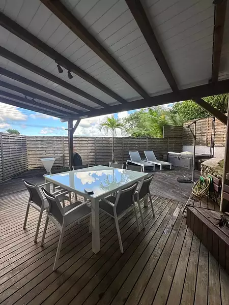 Bel Appartement T2 meublé situé à Bas-du-Fort GOSIER, secteur très prisé et calme, proche de toutes les commodités, à 15mn de Jarry comprenant : 1 séjour climatisé ouvert sur 1 cuisine aménagée et équipée, 1 chambre climatisée avec placard et sa salle d'eau attenante, 1 grande terrasse couverte et découverte avec Jacuzzi, 1 place de parking.