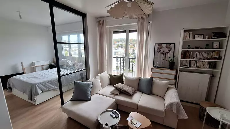 Les Demeures du Plessis Très beau deux pièces meublé avec vue panoramique cpt: entrée, séjour, cuisine, chambre, salle de bains, wc. LIBRE