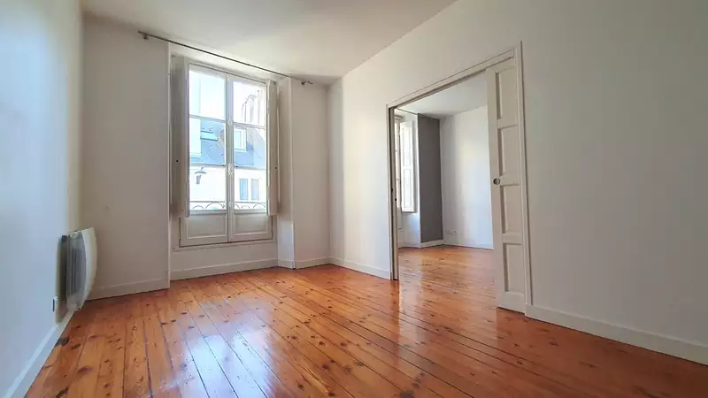 Au coeur du plateau pietonnier de la rue Maréchal Joffre, au 2ème étage sans ascenseur d'un immeuble ancien, beau T2/3 de 45 m2 offrant une grande cuisine aménagée de 17 m2 avec espace salle à manger , salon sur parquet , chambre sur parquet, salle de bains + wc. Parking couvert possible en option (+60€) dans une autre copropriété à 400 m ( rue Pitre Chevalier) . libre de suite