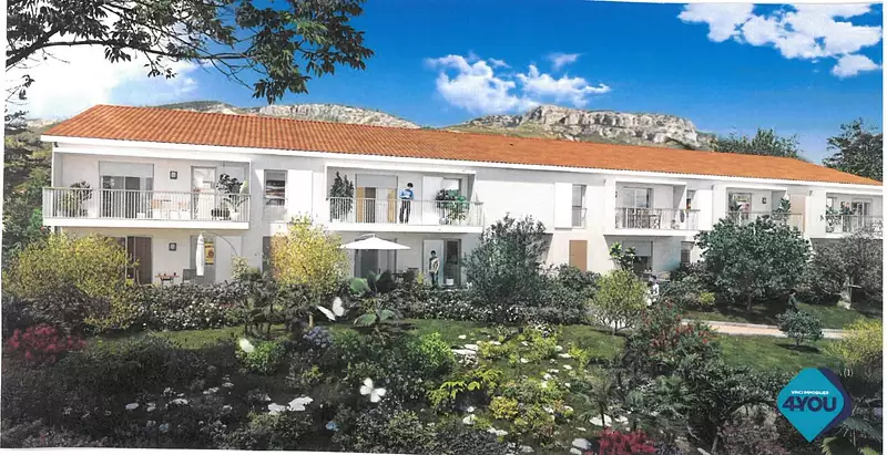 Dans petite résidence NEUVE clôturée et sécurisée - 2P en REZ DE JARDIN de 44m² avec terrasse de 13m² et jardin de 106m² Vaste séjour avec cuisine us semi équipée - Chambre - Douche italienne - 1 parking privé - Exposé sud - Calme Libre le 21 Décembre 2025