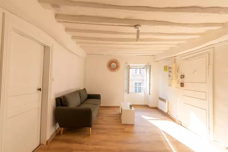 Appartement meublé de 3 pièces idéalement situé à côté des lycées, hôpital, centre ville, beaucoup de charme dans son décoration et son aménagement (poutres, parquet). Il offre une pièce de vie (canapé, table) avec un espace cuisine aménagée et équipée (réfrigérateur, four-micro ondes, lave-linge), une chambre meublée et une pièce dressing pouvant également servir de bureau. Chauffage individuel électrique. Loyer : 464€ dont 7€ de provisions sur charges pour éclairages des parties communes et eau froide. Disponible le 12 décembre 2025.