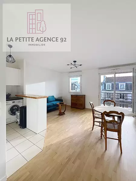 Au coeur du centre-ville de Clamart, rue Paul Vaillant Couturier, à 2 pas de la rue piétonne, du marché et des commerces, Appartement lumineux meublé de 2 pièces, dans copropriété avec ascenseur, entrée avec placards, cuisine ouverte sur le séjour, chambre avec grand dressing, et salle de bain avec WC. (Lit en cours de livraison) Un emplacement de parking en sous sol complète le bien. Votre dossier est à déposer en ligne ici : Tout dossier incomplet ne sera pas étudié. Consultez les risques naturels et technologiques sur https://www.georisques.gouv.fr/
