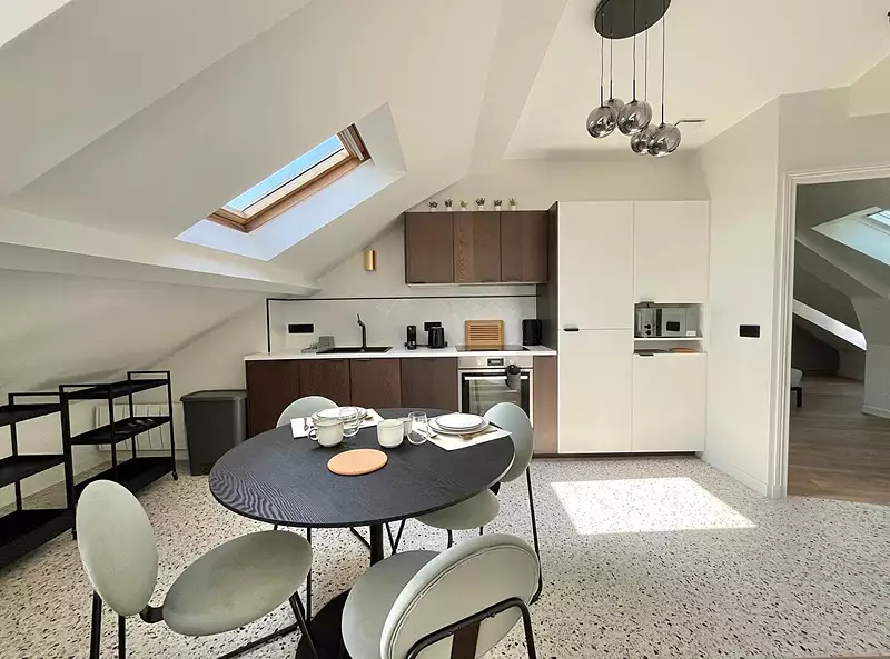 Oscar, votre expert de l'immobilier, vous présente à Fontenay-sous-Bois , rare sur le secteur, à deux pas de la rue Dalayrac et de ses commerces et du carrefour des Rigollots en bordure de Vincennes, Un splendide appartement entièrement meublé de deux pièces, rénové par architecte. Appartement clé en main. Situé au 3ème et dernier étage d'un immeuble au charme ancien et récemment ravalé, cet appartement de 60 m² au sol (37,6 m² Carrez) bénéficie d'un spacieux séjour avec vue dégagée sans aucun vis-à-vis. Baigné de lumière, il séduit par ses volumes, son calme et la qualité de sa rénovation, aussi bien esthétique que thermique. Aucun vis à vis. Il se compose d'un spacieux séjour avec cuisine ouverte aménagée et équipée (électroménager complet : TV, lave-vaisselle, lave-linge, vaisselle, ustensiles?), d'une chambre avec rangements sur mesure et literie complète, ainsi que d'une belle salle d'eau avec douche à l'italienne et WC. L'appartement est loué avec tout le nécessaire d'un meublé haut de gamme : linge de maison, couette, oreillers, sèche-cheveux, canapé, mobilier complet et nombreux rangements. A visiter sans tarder! Chauffage et eau chaude individuels électriques. Disponible immédiatement Transmettre dossier complet Garantie exigée (GarantMe/Unkle/Cautioneo, GLI ou Garantie Visale). Eligible bail mobilité. Copropriété de 6 lots - dont 6 lots habitation. (Pas de procédure en cours). Charges annuelles : 1440 euros.