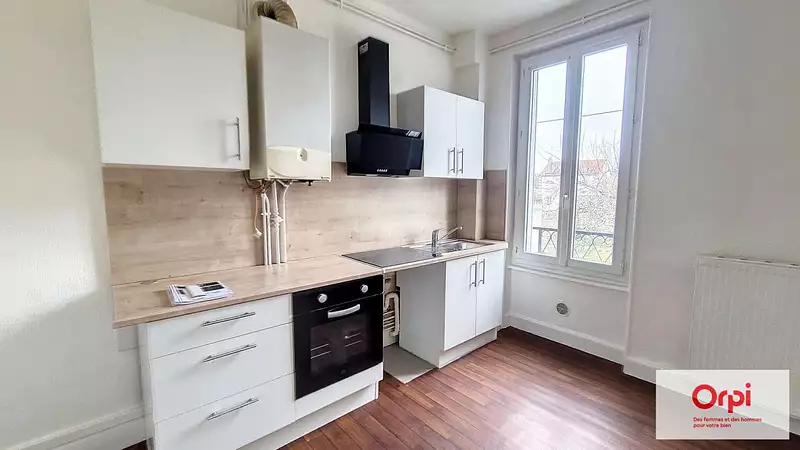 MONTLUCON PROCHE CENTRE VILLE Bel appartement F2 refait à neuf dans petit immeuble, au 1er étage, composé d'une entrée desservant une cuisine indépendante aménagée et équipée, un séjour, une chambre, une salle d'eau avec WC. Balcon. Chauffage gaz individuel. Double vitrage PVC. Disponible au 30 janvier 2026. ORPI LOCATION 04 70 02 33 78