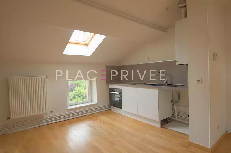 Nancy, secteur Oudinot - Loue appartement F3 de 45 m² au dernier étage avec ascenseur Au coeur du quartier Oudinot, au 4e et dernier étage avec ascenseur d'un immeuble soigneusement entretenu, ce trois pièces sous les toits mêle charme, lumière et fonctionnalité. Vous bénéficiez d'une pièce de vie chaleureuse, traversée de poutres apparentes et baignée de lumière grâce aux multiples fenêtres de toit. La cuisine ouverte équipée s'intègre discrètement à l'ensemble. Deux chambres, une salle de bain contemporaine récemment rénovée, un WC indépendant : tout y est, dans un style sobre et soigné. Situé rue du Lieutenant Henri Crépin, ce logement bénéficie d'un environnement calme, tout en étant proche des commodités : commerces de proximité, transports en commun (arrêt de bus à quelques pas), établissements scolaires, accès rapide au centre-ville. Le chauffage est individuel au gaz. Provision mensuelle pour charges : 50,00 euros (entretien des communs, eau froide, électricité des parties communes, entretien de l'ascenseur, taxe d'ordures ménagères). Fibre optique. Disponible immédiatement. Une exclusivité Place Privée. Les informations sur les risques auxquels ce bien est exposé sont disponibles sur le site Géorisques : www.georisques.gouv.fr ».