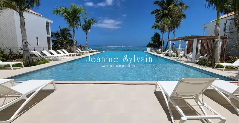 White Plage, résidence moderne sécurisée en bord de mer avec piscine devant la plage, très bel appartement F2 comprenant une chambre climatisée, un grand dressing, une salle d'eau, espace buanderie avec WC indépendant, une cuisine bien aménagée et équipée ouverte sur le salon, terrasse couverte de 17m2, un jardin privatif de 80m2.