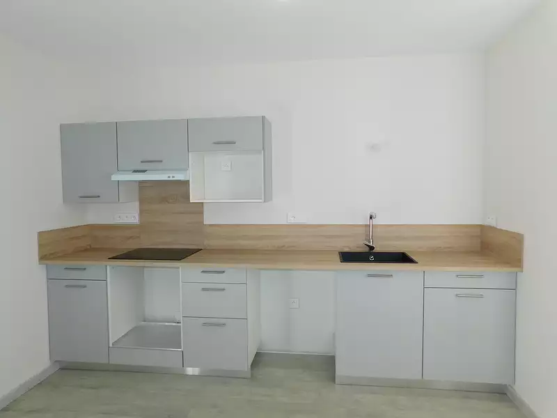 Une cuisine ouverte sur le séjour pour une surface d'environ 20m2, et deux chambres de 10.54 et 11.30 m2.