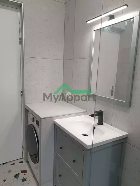 L'appartement possède une grande chambre séparée, une salle de douche avec WC et machine lavante/séchante.