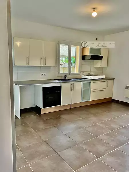 A louer appartement de type 2 en rez de jardin, se compose d'une entrée, d'un beau séjour avec cuisine ouverte ( plaque induction four, hotte), d'une chambre avec placard murale, une buanderie, une salle d'eau avec WC.