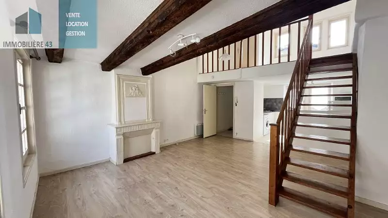 Secteur Place du Plot dans immeuble ancien avec beaucoup de cachet appartement type T2 duplex 47 m2 bon état lumineux double orientation chauffage individuel électrique avec isolation interphone cuisine équipée avec lave linge sur séjour salon 3ème et dernier étage libre