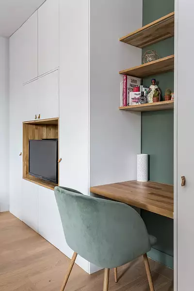 L'appartement se décrit comme suit : une entrée dessert un espace séjour avec cuisine americaine, une chambre de belle taille et une salle de bains avec WC.