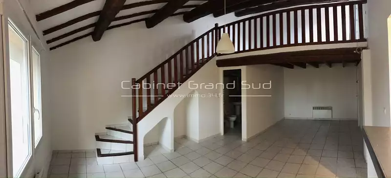 A louer à Garons au 1er étage d'une petite coproporété de 4 lots, appartement 2 pièces d'environ 48m2, offrant : un séjour avec cuisine de 29m2, une salle d'eau de 5m2 avec WC et une mezzanine de 14,50m2 donnat sur une terrasse de 4m2 .