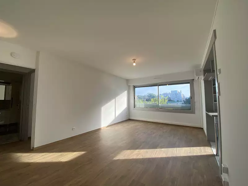 À louer, appartement T2 de 48,46 m2 situé au 3ᵉ étage de la résidence Le Copernic, dans le quartier de Mazargues (8ᵉ arrondissement de Marseille).