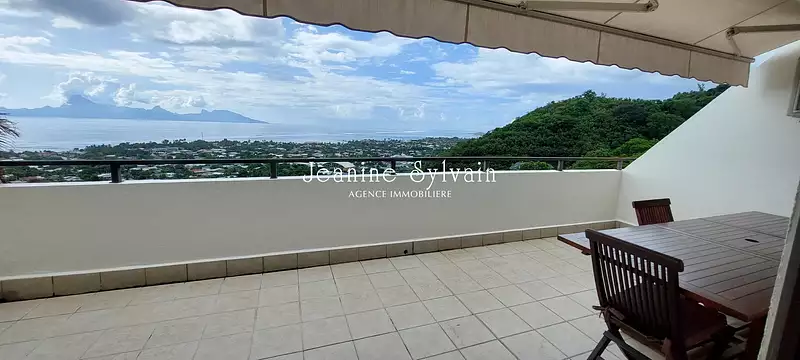 Punaauia sur les hauteurs avec vue imprenable sur Moorea dans résidence de bon standing avec piscine, sécurisé, portail automatique, beau F2 de comprenant séjour, cuisine, buanderie, une chambre climatisée, une salle d'eau, grande terrasse.