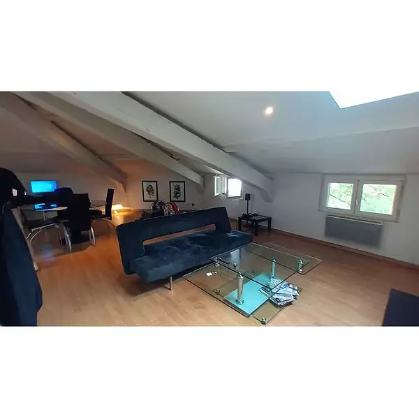 Minimes au pied du métro barriere de paris dans maison bourgeoise divisée Beau T2 atypique au 2ème et dernier étage développant 48,51M² LC de surface habitable et 60 M² de surface au sol + 1 PARKING sécurisé aérien dans la cour. Entrée ouvrant sur grand pièce de vie avec poutres en béton peintes ( salon / sam /cuisine aménagée et semi équipée (frigo/plaque/ hotte/avec bar) . Une grande chambre avec placards, une sde avec wc. double vitrage, fenetres et velux. chauffage electrique.